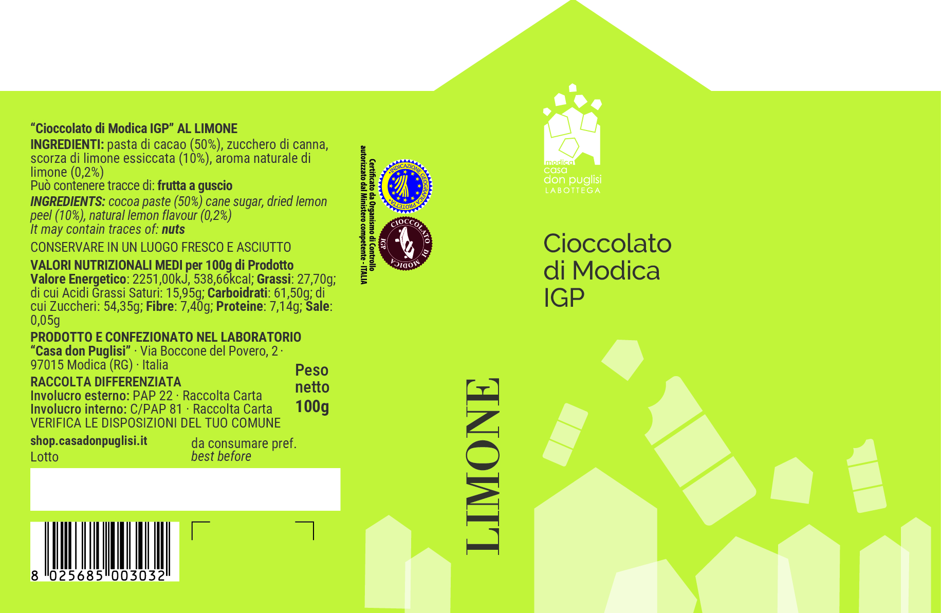 | INGREDIENTI | Ingredienti: pasta di cacao (50%), zucchero di canna, scorza di limone |